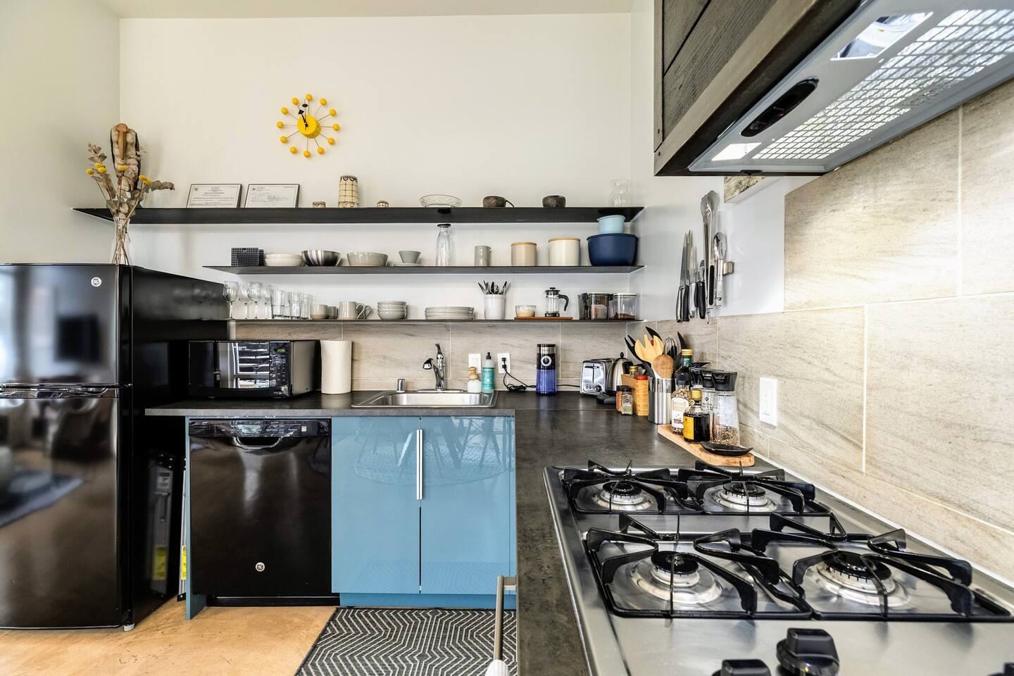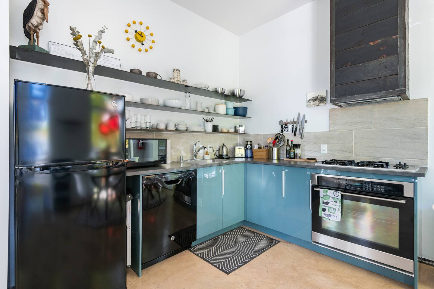 Experience the vibrant heart of Santa Fe at the Trailhead Compound, a thoughtfully designed community blending offices, shops, homes, and our beloved Cafecito. Our location in the Baca Railyard District puts you in the center of it all. Enjoy the unique flavors of Cafecito, our family-owned gem serving a delicious and healthy menu inspired by Argentinian, Armenian, and Italian cuisine. Savor authentic Buenos Aires-style coffee, mate (a traditional Argentine tea), and a variety of empanadas with chimichurri sauce, along with other cultural favorites. It's the perfect spot to grab a cup of tea, work remotely, or simply soak in the Santa Fe vibe. Our apartment is located in a new industrial-style building within the Trailhead Compound. Step outside and you're directly on the rail trail, offering easy access to the Railyard (via an underpass), the historic Plaza, and the rest of Santa Fe. Cerrillos Road, the freeway, medical facilities, and all other Santa Fe conveniences are also just minutes away.