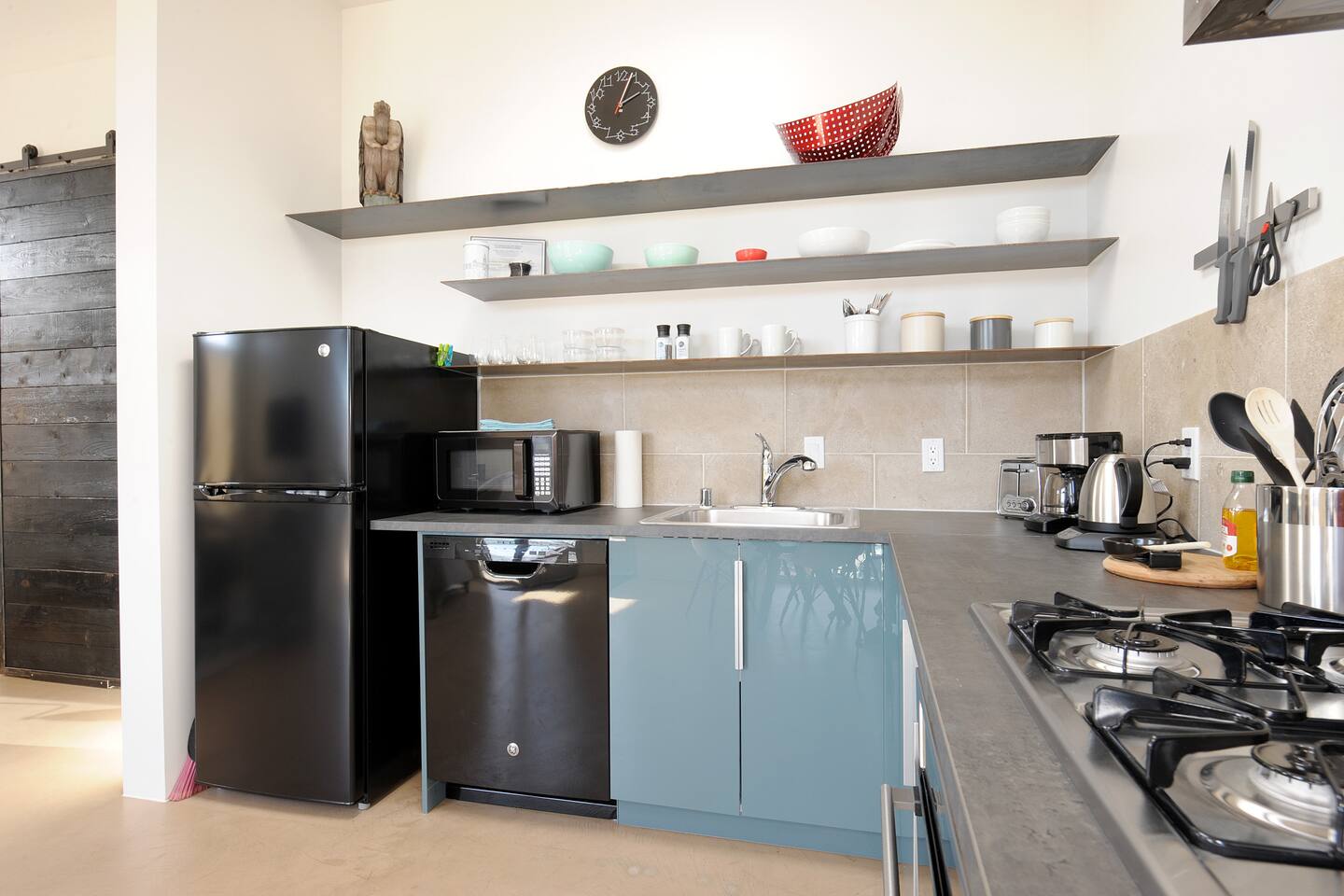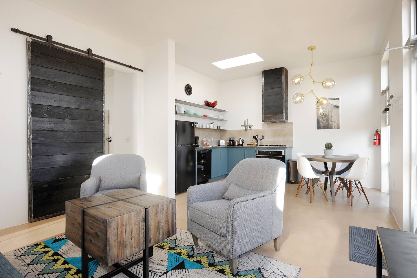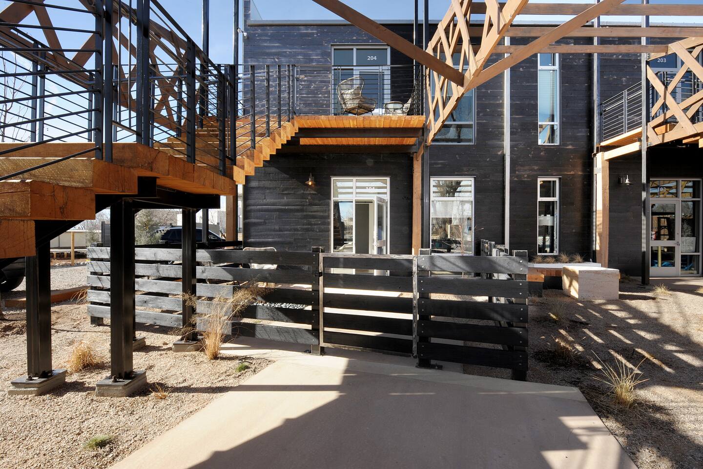 Experience the vibrant heart of Santa Fe at the Trailhead Compound, a thoughtfully designed community blending offices, shops, homes, and our beloved Cafecito. Our location in the Baca Railyard District puts you in the center of it all. Enjoy the unique flavors of Cafecito, our family-owned gem serving a delicious and healthy menu inspired by Argentinian, Armenian, and Italian cuisine. Savor authentic Buenos Aires-style coffee, mate (a traditional Argentine tea), and a variety of empanadas with chimichurri sauce, along with other cultural favorites. It's the perfect spot to grab a cup of tea, work remotely, or simply soak in the Santa Fe vibe. Our apartment is located in a new industrial-style building within the Trailhead Compound. Step outside and you're directly on the rail trail, offering easy access to the Railyard (via an underpass), the historic Plaza, and the rest of Santa Fe. Cerrillos Road, the freeway, medical facilities, and all other Santa Fe conveniences are also just minutes away.