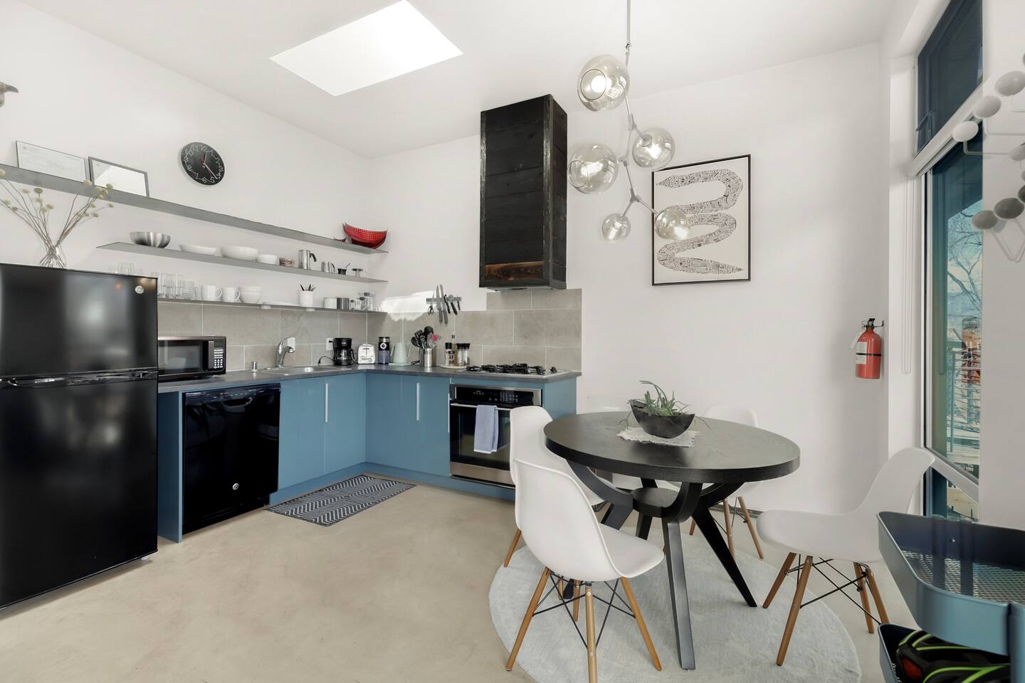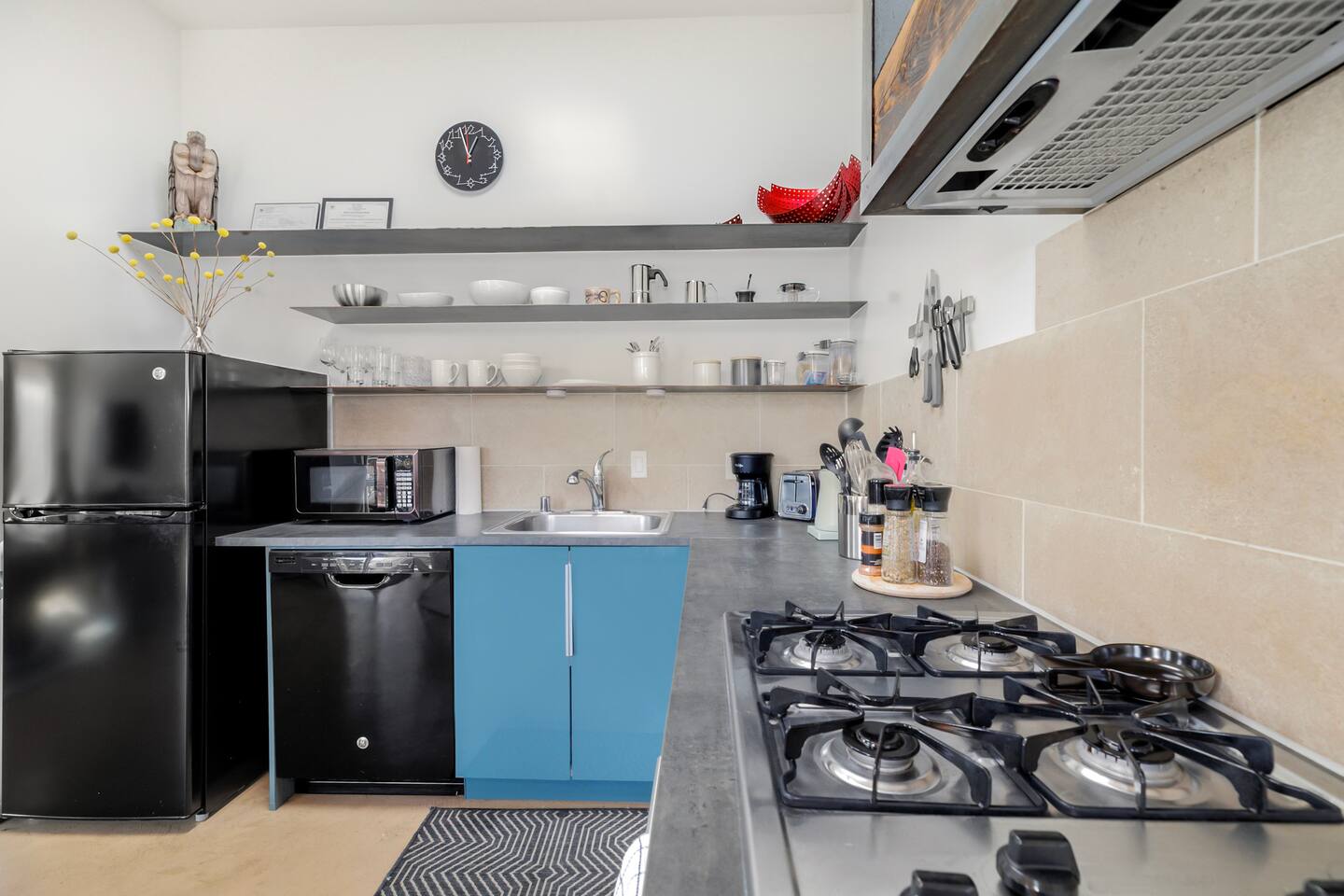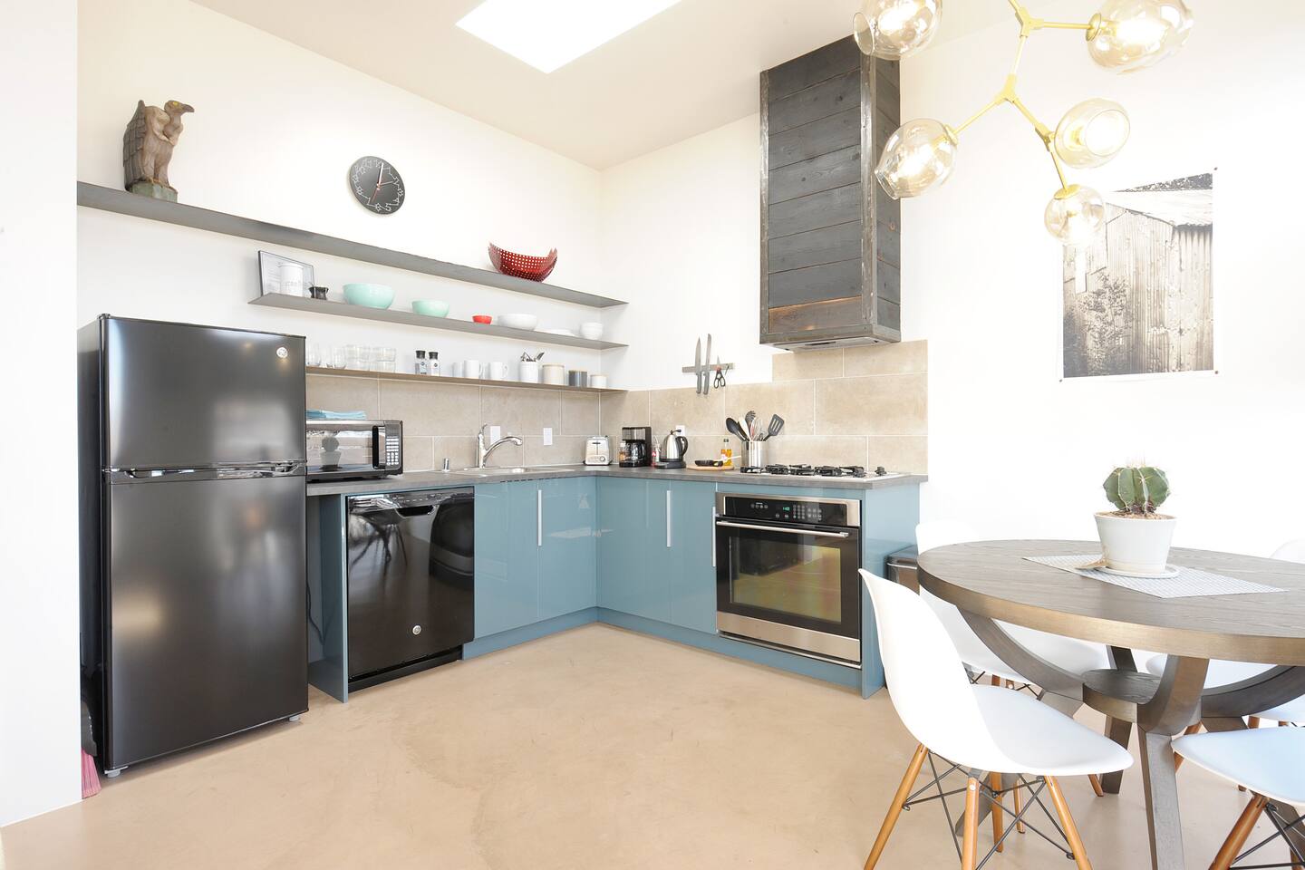 Experience the vibrant heart of Santa Fe at the Trailhead Compound, a thoughtfully designed community blending offices, shops, homes, and our beloved Cafecito. Our location in the Baca Railyard District puts you in the center of it all. Enjoy the unique flavors of Cafecito, our family-owned gem serving a delicious and healthy menu inspired by Argentinian, Armenian, and Italian cuisine. Savor authentic Buenos Aires-style coffee, mate (a traditional Argentine tea), and a variety of empanadas with chimichurri sauce, along with other cultural favorites. It's the perfect spot to grab a cup of tea, work remotely, or simply soak in the Santa Fe vibe. Our apartment is located in a new industrial-style building within the Trailhead Compound. Step outside and you're directly on the rail trail, offering easy access to the Railyard (via an underpass), the historic Plaza, and the rest of Santa Fe. Cerrillos Road, the freeway, medical facilities, and all other Santa Fe conveniences are also just minutes away.