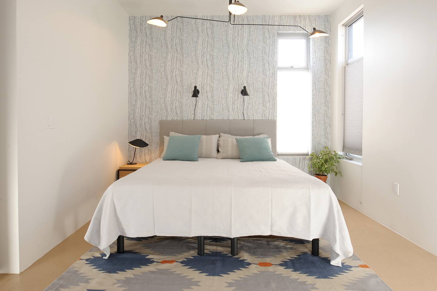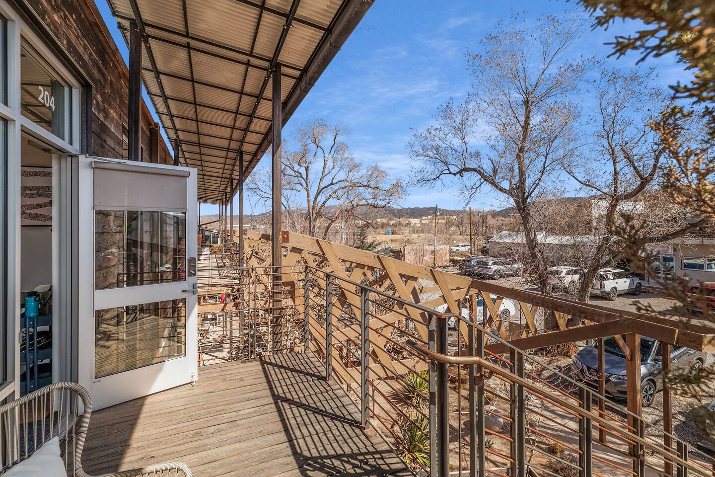 Enjoy Santa Fe in style from this stylish & modern 2nd-floor unit in the vibrant Baca Railyard. Steps from our beloved restaurant "Cafecito," you'll have easy access to downtown, the Plaza, museums, and all of Santa Fe's best restaurants. + Full Kitchen & Dishwasher + Washer/Dryer + Private Balcony w/ Distant Mountain Views + Cozy King Bed + Bonus Sofa Bed + A/C, Radiant Heat + Steps from Cafecito Restaurant & Bike Trail